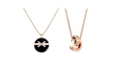 نرشح لكِ هاتين القلادتين أيضاً من Charmaleena، الأولى حرف الـ"ش" مزدانة بحجر الأفينتورين الأخضر والألماس والثانية قلادة حرف "ب" مرصعة بالصدف الأبيض والألماس وصممت من الذهب عيار 18 قيراطًا والألماس. وجاءتا بشكل يخطف الأنظار.