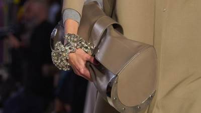 كان للمخمل حضور طاغي على مدرجات العروض، الخامة المرتبطة بإطلالات النبلاء، وظفتها الماركات العالمية في تصميم الفساتين المحتشمة، وقد أعجبنا الفستان المصمم بياقة عالية وأكمام طويلة من مجموعة ماركة فيرونيك ليروي Véronique Leroy، لائميه مع حذاء وحقيبة باللون الفضي.