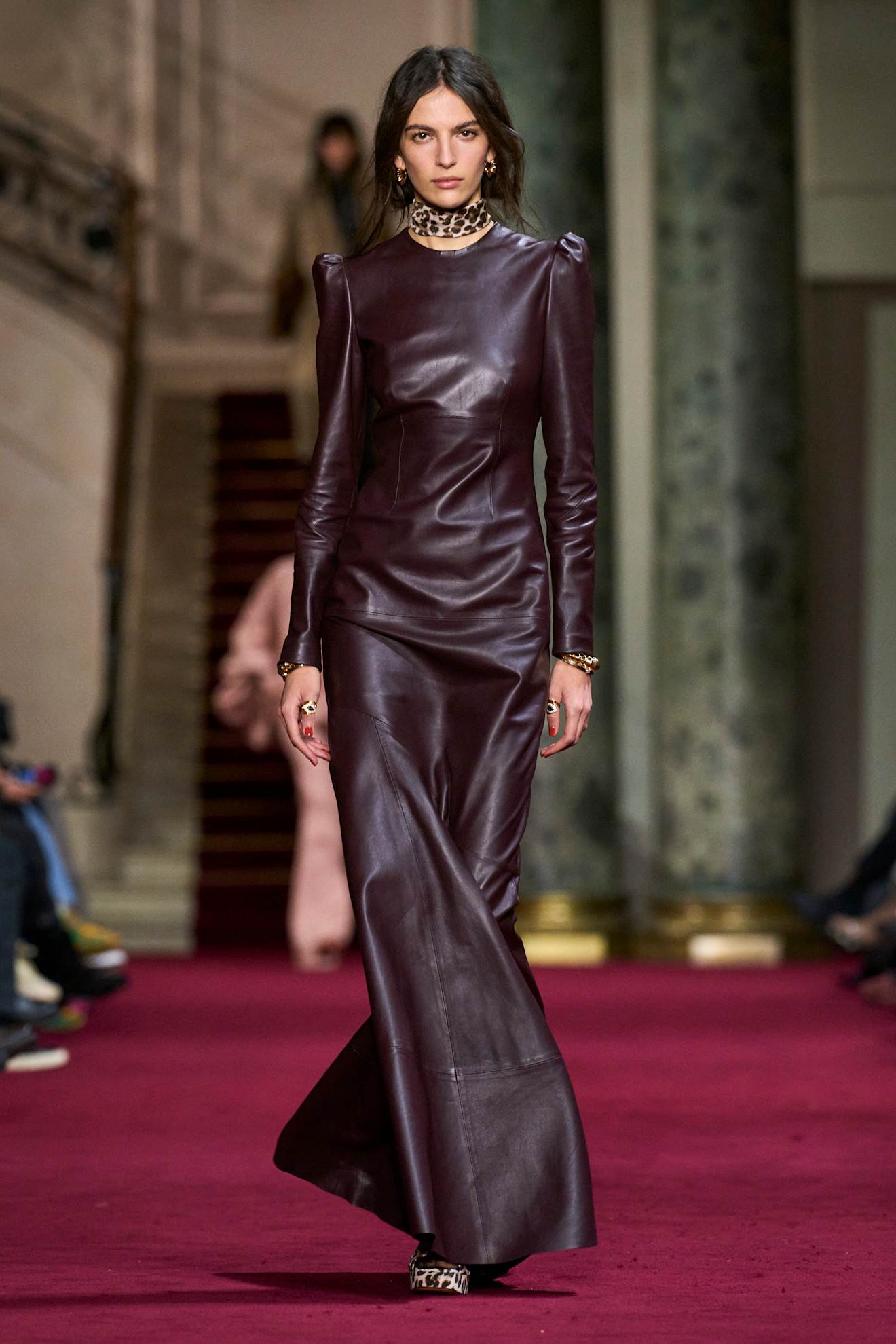 في حال اردت اختيار فساتين الجلد الفاخرة بتدرجات اللون البني المتموج، انتقي القطع الطويلة التي تبرز مع الشق الامامي والسحاب الطويل على طريقة دار Acne Studios مع السحابات الفضية الجانبية وقصة الاكتاف الضيقة التي تجعل إطلالاتك أكثر جاذبية.
