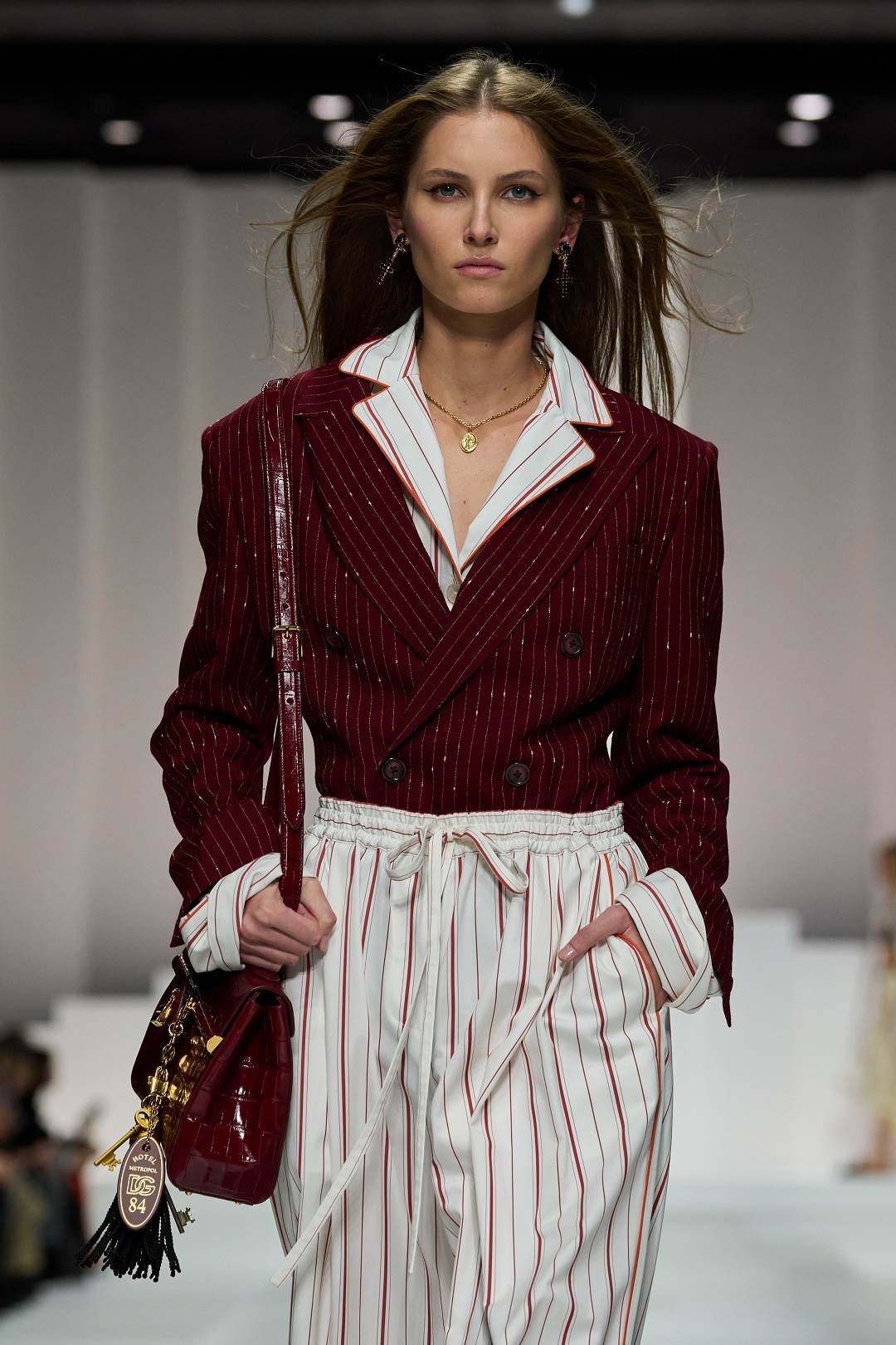 ركزت الإطلالات لمجموعة ربيع 2026 على أقمشة الدانتيل التي لطالما ارتبطت بالأنوثة الإيطالية الفاخرة، للمسة نعومة وبساطة، واللافت أيضاً هو التحوّل الذكي في الحياكة، إذ تخلّت البدلات عن صرامتها لتأخذ شكلاً أكثر انسيابية أقرب لستايل ملابس النوم، ليمنح المرأة حرية الحركة دون أن يفقدها حضورها الأنيق.