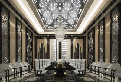 كانت هناك فساتين «التوغا» المستوحاة من الثقافة الإغريقية بألوان غلبت عليها درجات الأزرق والكاكي، والتراب الداكنة التي يمكن القول إنها مستوحاة من أجواء الصحراء. لم تغب التطريزات من التشكيلة، حيث خصص لها المصمم مجموعة تتلألأ بحلقات ومربعات تتراص على القطعة الواحد حتى تكاد تغطيها تماما، من دون أن يوحي بالمبالغة، نسقها مع أحذية بكعوب عالية ومدببة.