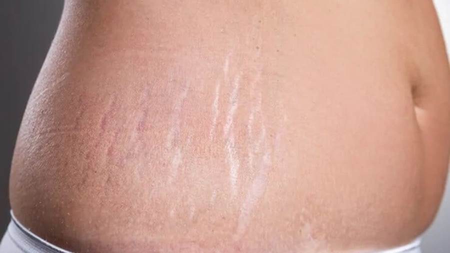 الخطوط البيضاء أو ما يعرف بالستريتش مارك هي تشققات أو شروخ في الجلد تظهر في أماكن مختلفه من الجسم كالساق والبطن والأرداف والذراعين وتكون نتيجه تمدد في ألياف الجلد وتمزقها يمكن تقسيم أسباب حدوث الخطوط البيضاء إلي 1.