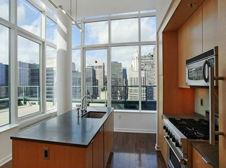 من أفخم وأفضل أنواع المطابخ علي الإطلاق؛ حيث يتميز مطبخ شقة "أوبرا وينفري" المعروضة للبيع بأنه مدهش ومذهل من حيث التصميم؛ حيث تتكون الأرضيات من الخشب الملفت للانتباه والنوافذ من الأرض للسقف.
