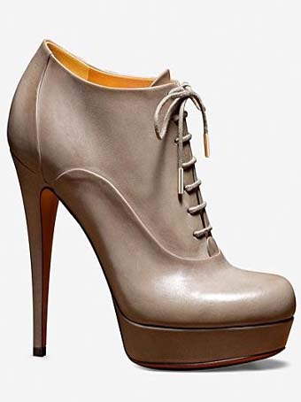 وتحتوي المجموعة علي أحذية وبوتات وصنادل مصنوعة من الجلد المطفى واللامع، جلد التمساح والفرو، الـ suede والساتان وكل تلك المواد ممتزجة مع بعضها، وتتنوع الألوان ما بين الأسود المحايد ولون جلد الإنسان Nude إلي اللون الأحمر البراق، الأرجواني والزمرد الأخضر، وبالرغم من ذلك تأتي الأحذية بشكل خريفي أقل أو أكثر تحفظا.