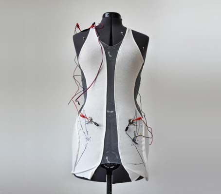 لكن جينيفر دارمور المصممة ذات الخبرة الواسعة التي تعمل لحساب شركة «أرتيفاكت» للتصميم في مدينة سياتل الأميركية، ترغب في علاج هذه المشكلة. ودارمور هذه هي التي تكتب في مدونة «إلكتريك فوكسي» التي تركز على الكومبيوترات القابلة للارتداء، خرجت بنموذج أولي لقميص من طراز «بيلاتس» Pilates يمثل تحديا للخبراء (وتعني كلمة «بيلاتس» نوعا من الرياضة التي تهدف إلى تقوية الجسم). ولهذا القميص مستشعرات داخلية تقوم بمراقبة وضع جسم الشخص الذي يرتديه، وتحذره عن طريق الارتجاج إذا ما شعرت أن وضع جسمه غير صحيح.