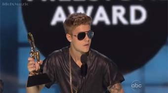 وقد إحتمل بيبر مزيج الهتاف والتصفيق وصيحات الإستهجان علي المسرح لعدة لحظات، قبل أن يقول: "أنا عمري 19 عاما، وأعتقد أنني أقوم بعمل جيد جداً. ومن قلبي أنا حقا أريد أن أقول أن الأمر ينبغي أن يكون حول الموسيقي والمهنة. وهذه ليست وسيلة للتحايل. أنا فنان وينبغي أن أؤخذ علي محمل الجد."