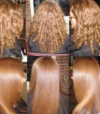 وتكون الخطوة الأخيرة هي فرد الشعرة بواسطة جهاز مكواة السيراميك أو البايبي ليس على درجة حرارة متوسطة، وبعد ذلك يقسم الشعر مرة أخرى إلى أربعة أجزاء متساوية ويُدهن بمستحضر خاص بتلميع الشعر يترك لمدة 10 دقائق، وتكرر نفس عملية التمشيط بالفرشاة لكل جزء مدة خمس دقائق ويترك بعد ذلك 24 ساعة قبل أن يغسل.
