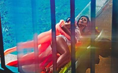 وتظهر الصورة إبنها كيم كارداشيان وهي تطارد إبنتها نورث ويست على الشاطئ بطريقة مضحكة .