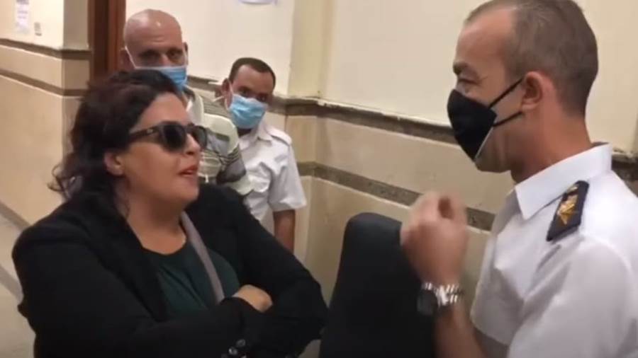 كان قد انتشر صباح اليوم مقطع فيديو تداوله رواد مواقع التواصل، ظهر فية مشادة كلامية بين ضابط شرطة برتبة مقدم وبين سيدة لرفض الاخيرة ارتداء الكمامة اثناء تواجدها بمقر المحكمة، فتطورت المشادة لتراشق بالالفاظ ، ووصفت السيدة التى تبين فى تحقيقات النيابة انها تعمل مستشارة بالنيابة الادارية الضابط "بالزبالة" فقام الضابط بخطف تليفونها من يدها.