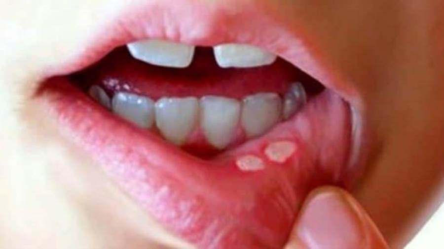 - بقع بيضاء على الجزء الداخلي من الخدين واللسان وسقف الفم والحلق.
