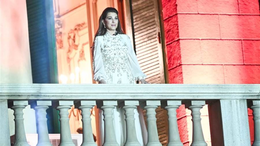 واختارت ماجدة الرومي فستانا أبيض اللون مطرزا بالكريستالات البيضاء والفضية والذهبية، من تصميم سعيد قبيصي، من مجموعته التي صممها بالاستعانة بالذكاء الاصطناعي.