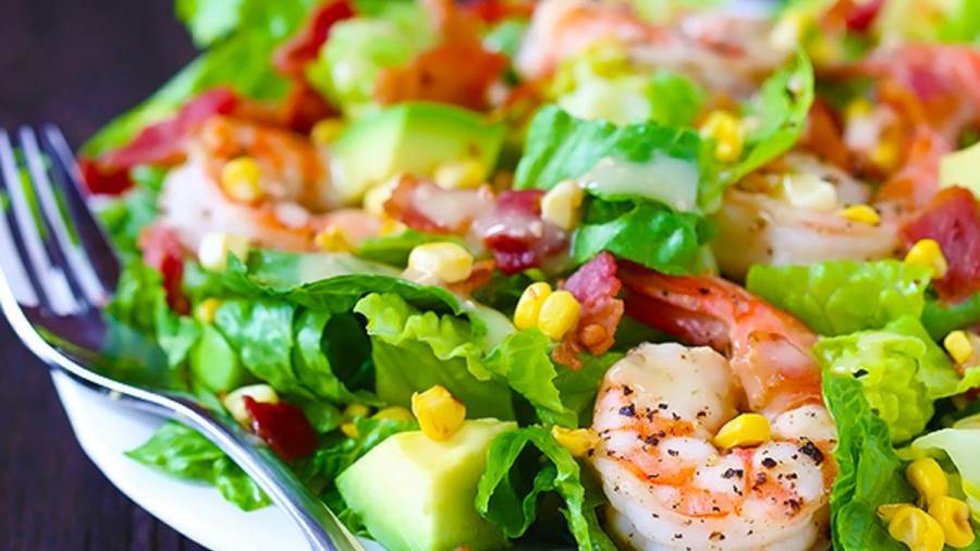 طريقة عمل سلطة الخس بالأفوكادو والجمبري