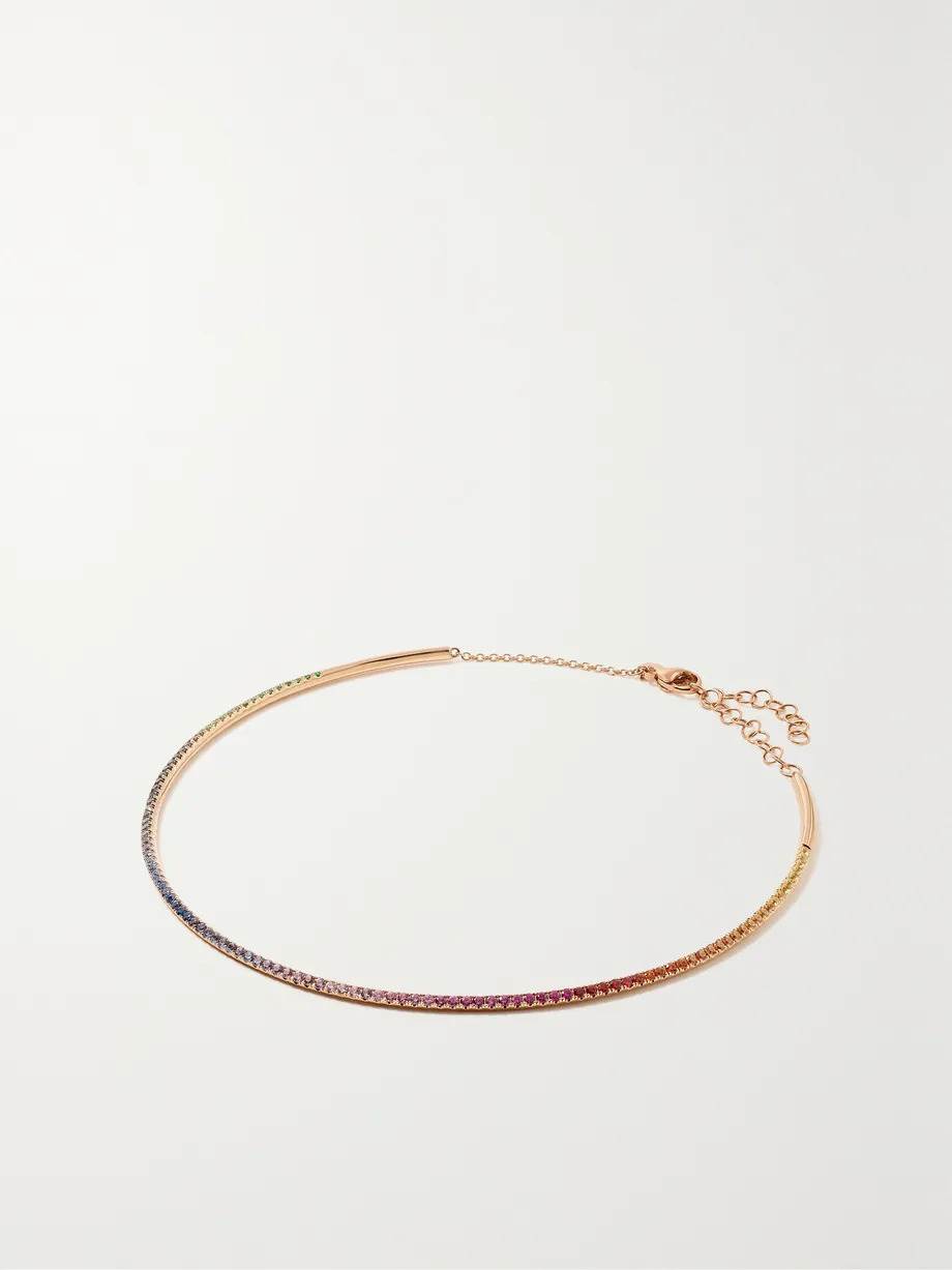 يمثل هذا العقد إبداعاً حقيقياً يعكس أسلوب ديان كورداس الفريد في مزج الأحجار الكريمة المتألقة مع التصاميم الانسيابية، فقد صنع من الذهب الوردي عيار 18، وتزينه أحجار الياقوت متعددة الألوان والتسافوريت، المصقولة بعناية لتعكس بريقاً مذهلاً مع كل حركة. وتتناغم ألوان الأحجار النابضة مع لمعان الذهب الوردي الدافئ لتمنح العقد طابعاً مميزاً، كما توفر السلسلة القابلة للتعديل راحة مثالية تناسب مختلف الإطلالات، سواء مع فستان سهرة راقٍ أو إطلالة مسائية أنيقة، مما يضفي على هذه القلادة جاذبية عصرية وأناقة خالدة.