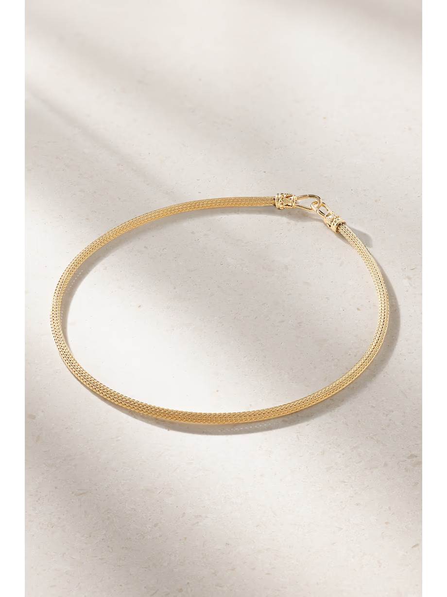 يجسد هذا العقد من الذهب عيار 14 طابع ماري ليشتنبرغ المميز، ويتميز بسلسلة ذهبية مضفرة متينة ولامعة، مصممة بحرفية دقيقة لتمنح إحساساً بالفخامة، مع الأقفال التقليدية التي تعد سمة مميزة في مجموعات ليشتنبرغ، وهذا التصميم الذي يحاكي الحبل يضيف غنى للتصميم ويعزز من جاذبيته، حيث تعد هذه القلادة خياراً فريداً يمكن ارتداؤها بمفردها كقطعة بارزة أو دمجها مع مجوهرات أخرى لإطلالة ملفتة ومتنوعة.
