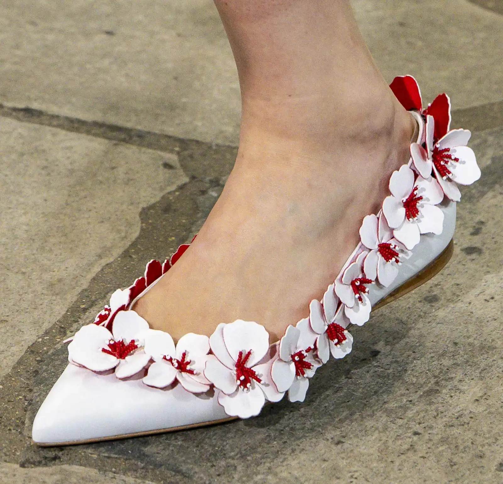لإطلالة زفاف نابضة بالحيوية، يناسبك الحذاء المسطّح باللون الأبيض المزيّن بزهور بارزة تضيف طابعًا أنثويًا منعشًا. أما الذوق الجريء، فيمكن التعبير عنه من خلال تنسيقات تجمع الأبيض مع الأحمر أو الوردي، لإضفاء تباين أنيق يخفّف من هدوء اللوك بأسلوب متوازن.
