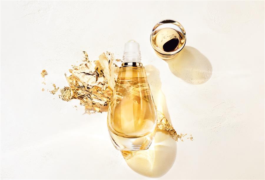 زجاجة طويلة أنيقة مغطاه بغطاء فضي مع علبة الكولونيا ذات اللمسة الرقيقة التي انفرد بها ديور.
